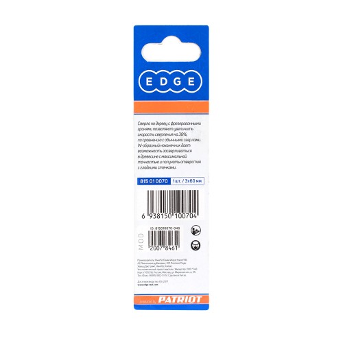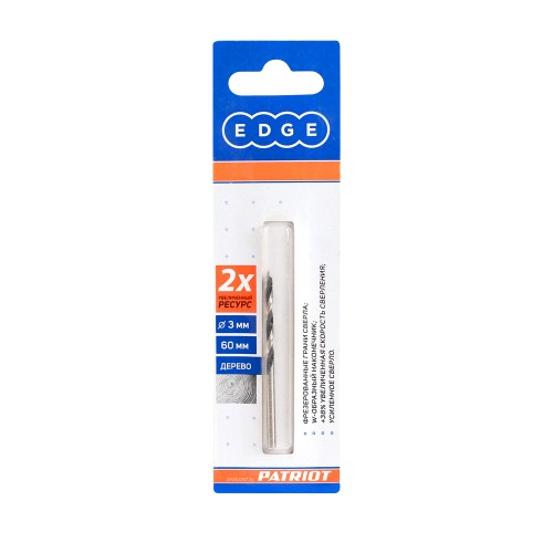 Наружный диаметр: 3 мм; Хвостовик: 3 мм; Длина сверла: 60 мм; Обрабатываемый материал: дерево; Материал сверла: инструментальная сталь;