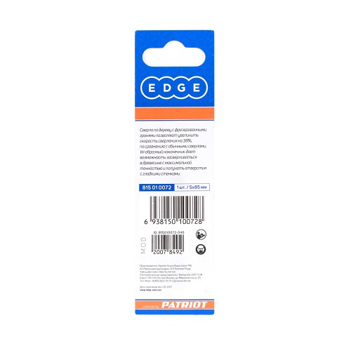 Наружный диаметр: 5 мм; Хвостовик: 5 мм; Длина сверла: 85 мм; Обрабатываемый материал: дерево; Материал сверла: инструментальная сталь;