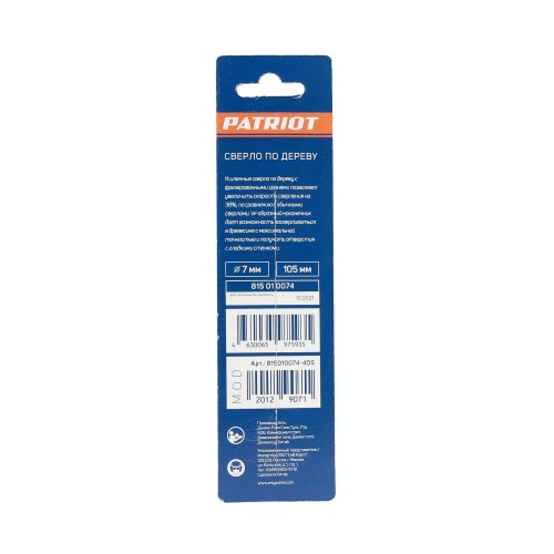 Наружный диаметр: 7 мм; Хвостовик: 7 мм; Длина сверла: 105 мм; Обрабатываемый материал: дерево; Материал сверла: инструментальная сталь;