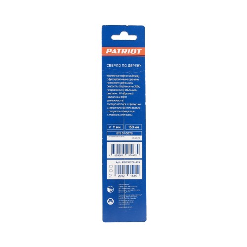 Наружный диаметр: 11 мм; Хвостовик:10мм; Длина сверла: 150 мм;  Обрабатываемый материал: дерево; Материал сверла: инструментальная сталь;