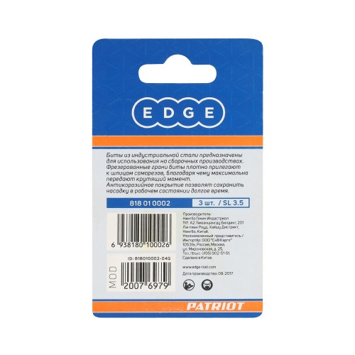 Фрезерованная бита из индустриальной стали SL 3.5мм х 25 мм, 3шт в блистере