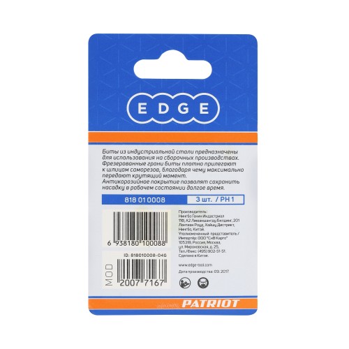 Фрезерованная бита из индустриальной стали PH1 х 25 мм, 3шт в блистере