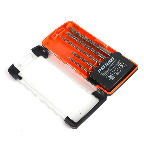 Набор буров SDS Plus, 5 шт: 5x110мм, 6x110мм, 6x160мм, 8x160мм, 10x160мм в боксе. Хвостовик SDS Plus. Усиленный бур с двойной спиралью для лучшего отвода шлама.