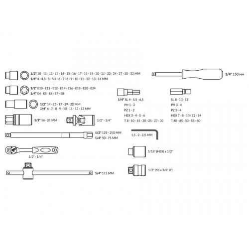 + Головка торцевая 12: E10, E11, E12, E14, E16, E18, E20, E24;