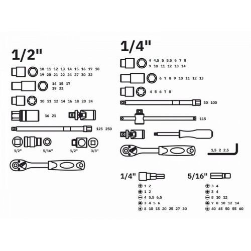 + Головка торцевая 12: 10, 11, 12, 13, 14, 15, 16, 17, 18, 19, 20, 21, 22, 24, 27, 30, 32 мм;