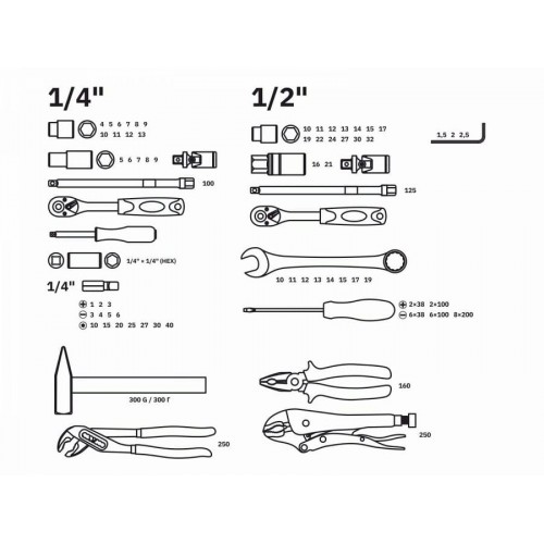 многофункциональный набор предназначен для ремонта и обслуживания автомобиля, а также для выполнения других слесарных работ |