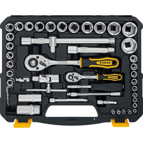 Универсальный набор инструмента STAYER 27760-H94_z01, предназначен для монтажа и демонтажа резьбовых соединений при ремонте автомобилей и других изделий. В комплект входит:Головки торцевые FLANK 1/2" - (10, 11, 12, 13, 14, 15, 16, 17, 18, 19, 20, 21, 22, 23, 24, 27, 30, 32 мм) - 18 шт.