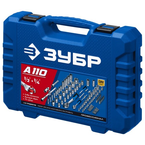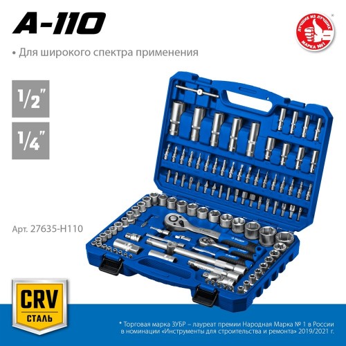ЗУБР А-110, 110 предм., (1/2" + 1/4"), универсальный набор инструмента, Профессионал (27635-H110_z01)