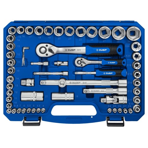 Универсальный набор инструментов ЗУБР 27635-H110_z01, предназначен для работ с крепежом. Имеет большой ресурс и сохраняет свои высокие свойства на протяжении всего срока службы. Высококачественная Cr-V сталь. Профиль FLANK. В комплект входит:Головки торцовые 1/2″ - (10,11,12,13,14,15,16,17,18,19,20,21,22,24,27,30,32 мм) - 17 шт.