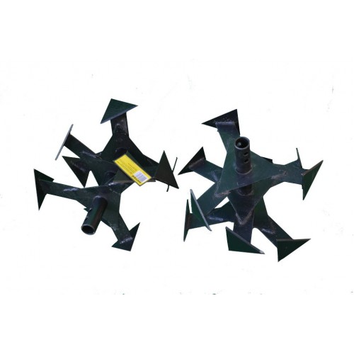 Главная особенность «гусиных лапок» - треугольная форма концов ножей, обеспечивающая достаточное крошение и перемешивание почвы. Такая сплошная конфигурация обусловлена необходимостью прочности при работе на твердом грунте, целины, ее культивирования. Подходит для работы с участками земли с крупными комьями.