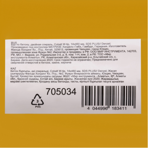 Бур по бетону Denzel арт. 705034 с хвостовиком SDS PLUS и двойной спиралью предназначен для сверления отверстий в бетоне, кирпиче и камне. Он используется в качестве оснастки для перфораторов с патроном SDS Plus. Бур оптимален для проведения строительных, ремонтных, монтажных работ.