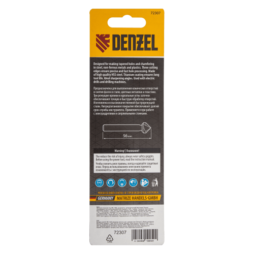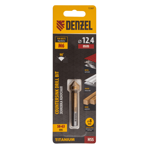 Зенковка конусная DENZEL под М6, HSS, по металлу, цилиндрический хвостовик