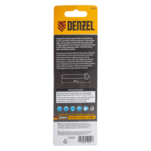 Зенковка конусная DENZEL под М5, HSS, по металлу, цилиндрический хвостовик