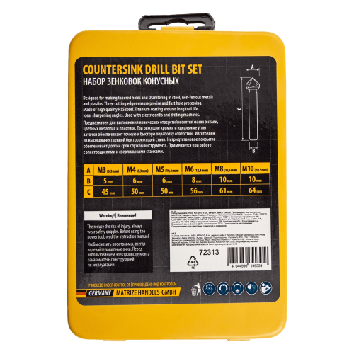 • Комплект содержит 6 зенковок наиболее популярных размеров M3-M10.