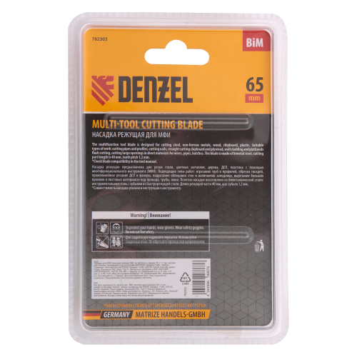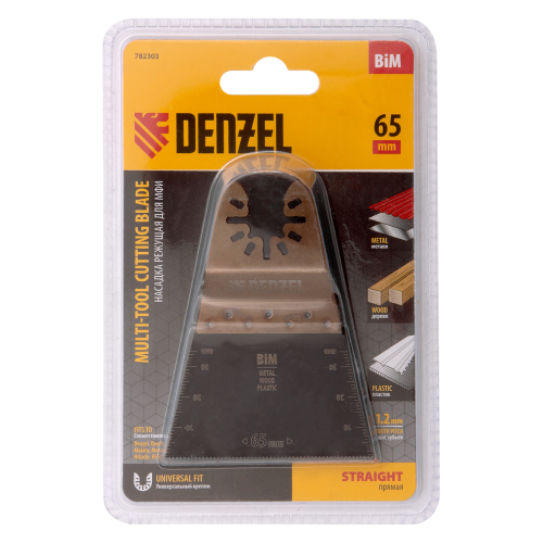 Насадка для МФИ DENZEL 782303 режущая прямая, BiM, по металлу и дереву, 65 x 1.2 мм