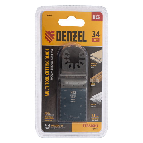 Насадка для МФИ DENZEL 782312 режущая пазовая прямая, HCS, по дереву, 34 х 1.4 мм