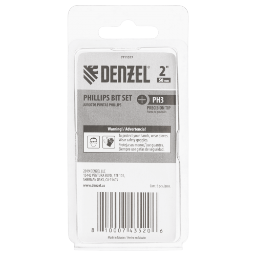 Набор Denzel 7711317 включает 5 бит типоразмера PH3 х 50 и предназначен для закручивания и откручивания винтов и шурупов со шлицем Phillips. Оснастка устанавливается в шуруповерты, электрические отвертки и отвертки-держатели. Набор будет полезен для сборки и ремонта мебели и техники, пригодится дома и на даче.
