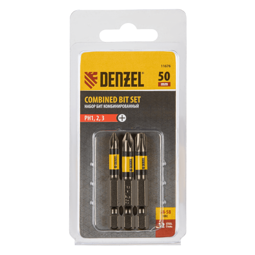 Набор бит комбинированный DENZEL 3 шт., РН1, РН2, РН3, 50 мм, сталь S2