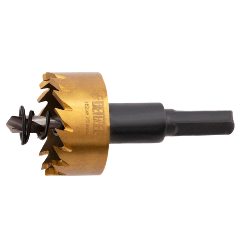 Коронка Denzel 724107 диаметром 29 мм, из стали HSS, с нитридтитановым покрытием, применяется для сверления отверстий в черных, цветных металлах, пластике и других материалах. Рассчитана на профессиональное использование на строительной площадке. Коронка пригодится при прокладке коммуникаций, монтаже оборудования, крепежных элементов и различных конструкций.