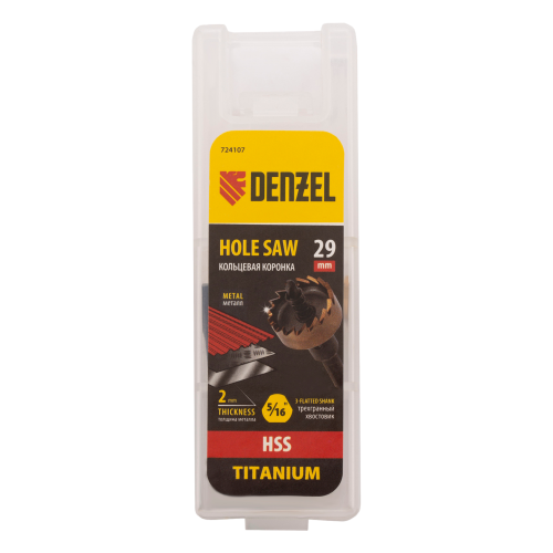 Коронка по металлу DENZEL 724107, 29 мм, HSS, нитридтитановое покрытие