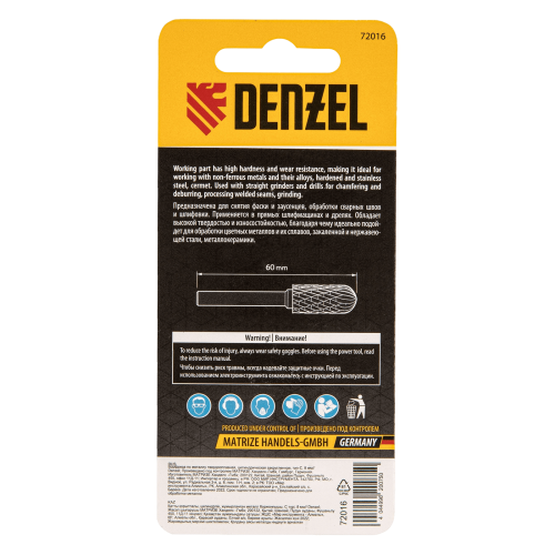 Твердосплавная борфреза Denzel 72016 с цилиндрической закругленной рабочей частью (тип C), диаметром 8 мм, предназначена для шлифовальных работ по металлу: закаленной и нержавеющей стали, латуни, чугуну, бронзе, титану, меди. Также используется для обработки искусственного камня и металлокерамики. Борфреза позволяет зачищать сварные швы, удалять заусенцы и снимать фаски. Форма рабочей части оптимальна для обработки радиусных пазов, поверхностей с плавными изгибами. Также с помощью борфрезы можно быстро и эффективно восстановить гравировку. Оснастка устанавливается на дрель или прямошлифовальную машину.