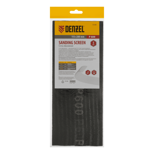 Сетка абразивная DENZEL 75189, P600, 115 x 280 мм, 5 шт.