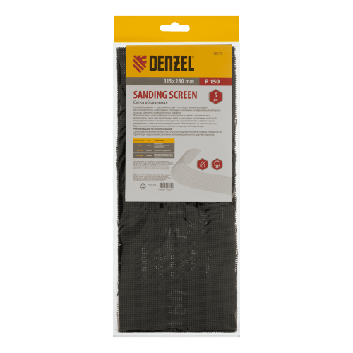 Сетка абразивная DENZEL 75175, P150, 115 x 280 мм, 5 шт.