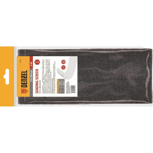Абразивная сетка Denzel 75175, 115 х 280 мм, с зернистостью P 150, 5 шт. в упаковке, применяется для чистовой обработки и придания гладкости зашпаклеванным поверхностям, а также твердой древесине и металлу. Она бережно снимает тонкий слой материала и лакокрасочного покрытия, удаляет ржавчину и заусенцы, сглаживает неровности. Абразивный слой обладает высоким ресурсом, т.к. зерна карбида кремния стачиваются медленно. Сетку устанавливают на ручные шлифовальные приспособления — бруски и сеткодержатели соответствующего типоразмера.