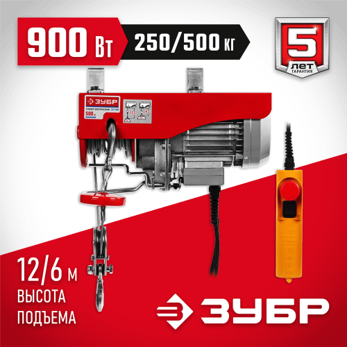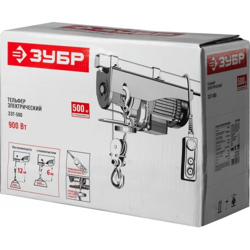 ЗУБР 0,5 т (без полиспаста 0,25 т), канатный, тельфер электрический ЗЭТ-500