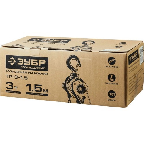 ЗУБР 3 т, 1,5 м, таль ручная цепная рычажная 43090-3_z01 Профессионал
