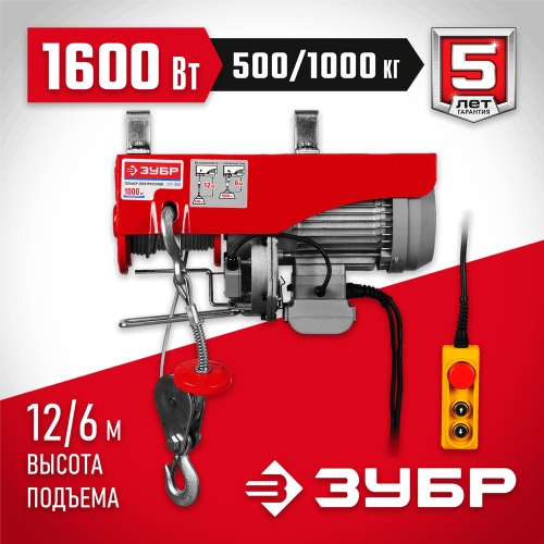ЗУБР 1 т (без полиспаста 0,5 т), канатный, тельфер электрический ЗЭТ-1000