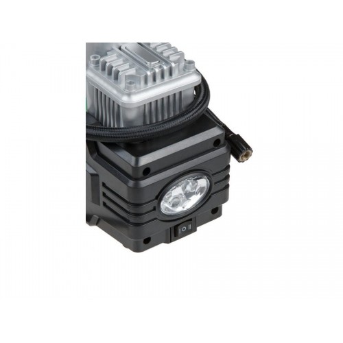 Особенности: - Двухцилиндровый производительный насос; - Мощный двигатель со 100% медной обмоткой и большим статором обеспечивает гарантированно высокий ресурс устройства и быстроту работы; - Тефлоновый поршень с подшипником; - Высококачественный шланг в защитной оплетке с клипсой-фиксатором; - Время накачивания колеса 19565R15 до давления 2 бар - 3-5 мин; - Большой манометр градуирован до 7 бар; - Встроенный светодиодный фонарь удобен при эксплуатации в темное время суток; - Резьбовой коннектор с антикороззийным напылением; - В комплекте спиральный шланг 2.5 метра, увеличивающий радиус действия компрессора; - Удобная сумка для хранения и транспортировки; - Антивибрационные резиновые ножки; время указано с запасом, на практике реальное время зависит от размера и степени накачки колеса, температуры и влажности воздуха.