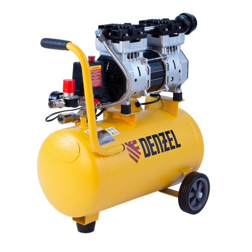 Компрессор безмасляный DENZEL DLS950/24, 950 Вт, 165 л/мин, ресивер 24 л, малошумный