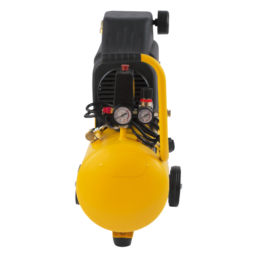 - Мобильность — компрессор, оснащенный ручкой и колесами, весит 22,6 кг, что упрощает его транспортировку.