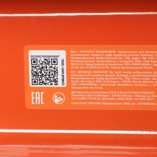 Оснащен детектором угарного газа (при превышении нормы CO - генератор самоотключается).