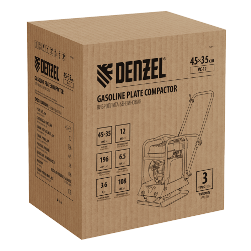 Виброплита бензиновая DENZEL VC-12, 12 кН, 45*35 см, 196 см3