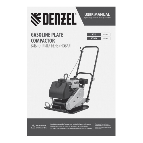 Комплектация Виброплита бензиновая - 1 шт, руководство по эксплуатации с гарантийным талоном - 1 шт