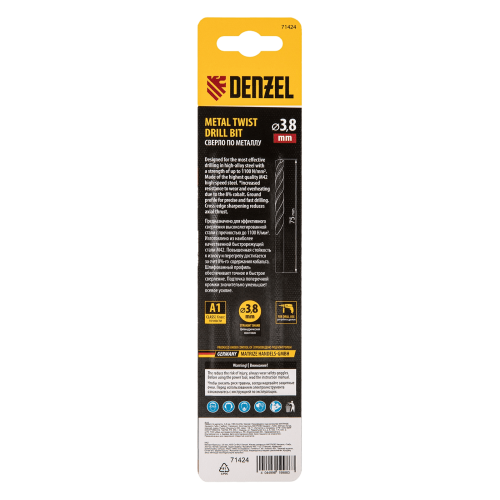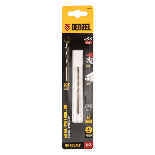 Сверло по металлу DENZEL 3,8 мм, HSS Co-8%