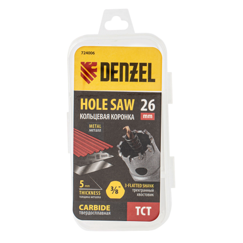 Коронка по металлу DENZEL 724006, 26 мм, твердосплавная
