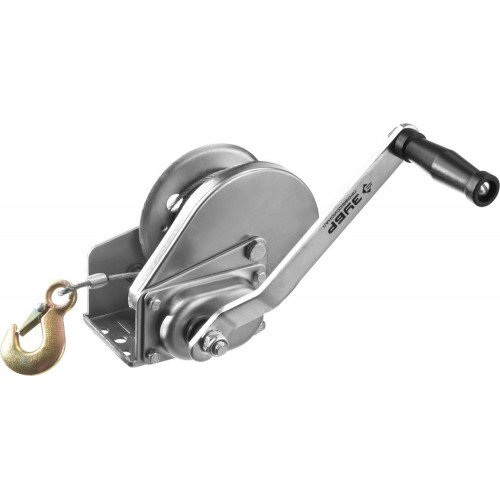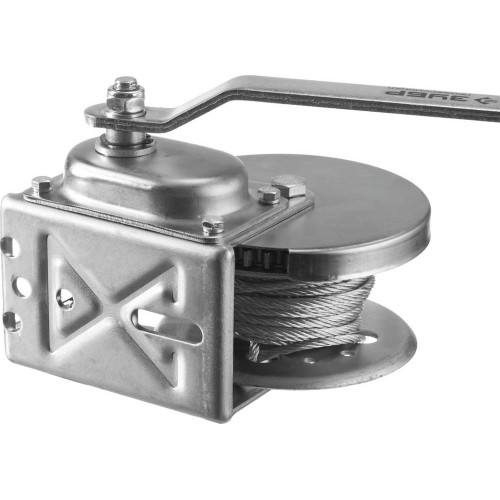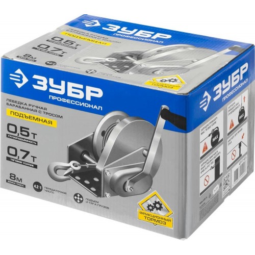 Лебедка ручная барабанная ЗУБР 43117-0.5, предназначена для перемещения грузов по горизонтальной и наклонной плоскостям. Не требует дополнительного питания или других вспомогательных приборов. Возможность безопасно не только передвигать груз, но и работать в вертикальной плоскости делает лебедку отличным универсальным устройством для перемещения грузов. Трос изготовлен из стали. Один крюк.