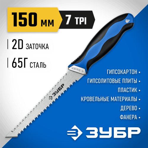 ЗУБР 150 мм, с двухсторонним лезвием, выкружная мини-ножовка для гипсокартона Гипрок 15178_z02 Профессионал