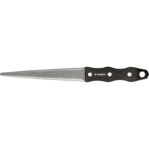 Напильник ЗУБР 33396-150-400, применяется для заточки и тонкой доводки ножей и лезвий режущих инструментов, а также для обработки стекла, керамики, стальных изделий. Алмазные напильники ЗУБР обладают высокой производительностью и длительным сроком службы благодаря качественному алмазному нанесению. Нанесение из высококачественных синтетических алмазов. Равномерное распределение алмазного порошка по рабочей части напильника обеспечивает высокую чистоту обработки поверхности. Эргономичная пластиковая ручка удобна в работе и имеет отверстие для подвешивания инструмента.