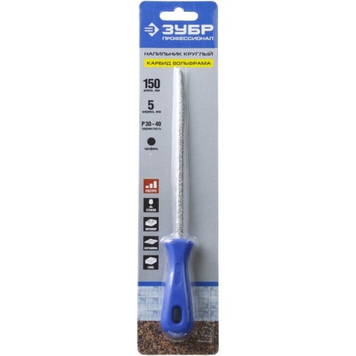 Напильник ЗУБР 33367-150-5, применяется для обработки поверхностей из различных материалов, таких как стекло, мрамор, керамика, гипсовая плита. Напильники с карбид-вольфрамовым нанесением ЗУБР - инструмент для многоцелевого использования. Изготовлены из высококачественной стали, имеют длительный срок службы и обеспечивают высокую скорость и качество выполнения работ. Автоматическое нанесение и пайка карбид-вольфрамового зерна. Равномерное распределение режущих элементов на рабочей части обеспечивает аккуратную обработку поверхности. Для обработки вогнутых поверхностей и отверстий. Пластмассовая рукоятка имеет отверстие для хранения инструмента в вертикальном положении.