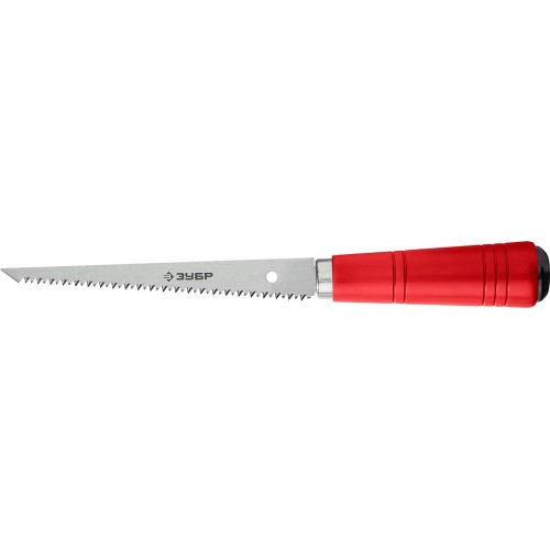 Выкружная ножовка по гипсокартону ЗУБР 15177, предназначена для точного выполнения фигурных прорезей в материалах малой толщины: гипсокартоне, ламинате, фанере, ДСП, пластике и т.п. Прочная пластиковая рукоятка с металлическим усилителем. Острозаточенное лезвие для протыкания материала перед последующим распилом.