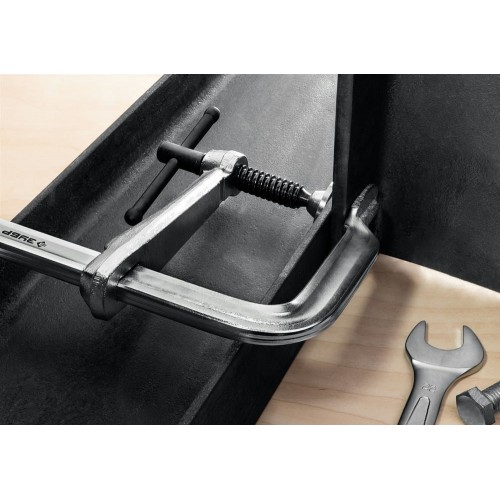 Струбцина ЗУБР 32157-120-1000, применяется для фиксации и удержания деталей при выполнении столярных и слесарных работ. Предназначена для сварочных работ. Тавровый профиль. Т-образная рукоятка.