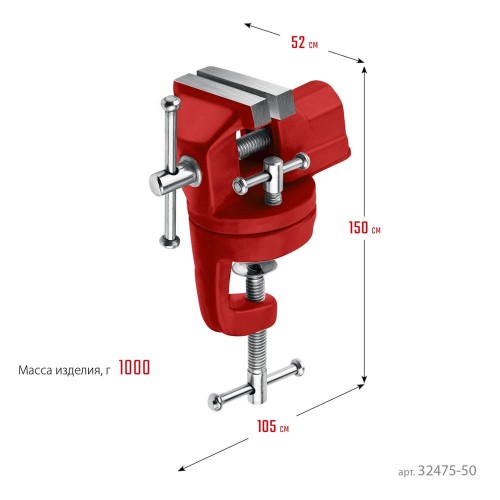 Настольные поворотные тиски для точных работ MIRAX 32475-50, предназначены для закрепления деталей при выполнении различного вида точных слесарных, механических и ювелирных работ. Поворотное основание позволяет перемещать корпус тисков в горизонтальной плоскости и фиксировать его в необходимом положении. Ход струбцины 25 мм.