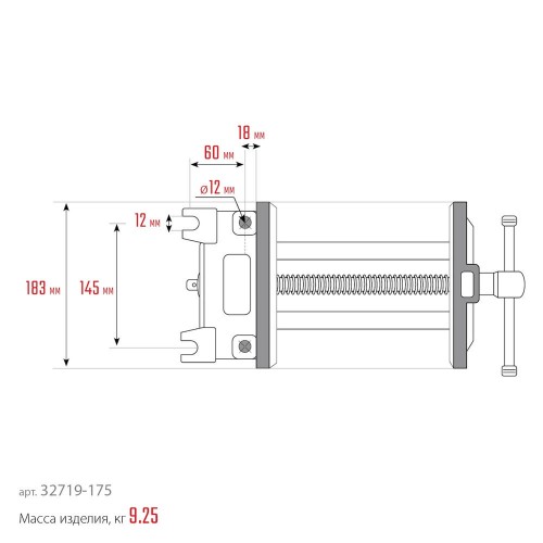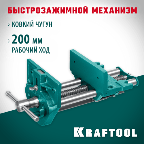 Тиски столярные KRAFTOOL 32719-175, предназначены для зажима различных предметов или их отдельных составных элементов. Быстрый и надёжный зажим деталей и заготовок. Корпус и подвижная планка изготовлены из высококачественного чугуна. Применение в зажимном винте трапецеидальной резьбы обеспечивает надёжность работы зажимного механизма и достижение большой силы крепления. Уникальная конструкция тисков с быстрозажимным маханизмом делает рабочий процесс более быстрым и эффективным. Дополнительные направляющие обеспечивают параллельное движение, а также плавность перемещения и зажима. Установка тисков на столе осуществляется с помощью винтов и гаек, для чего в основании предусмотрены отверстия.