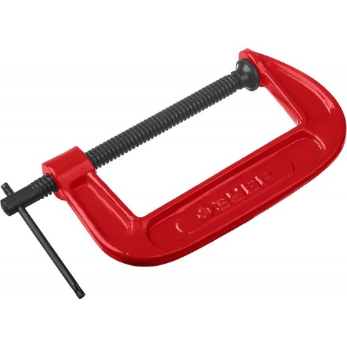 Струбцина 32244-125, применяется для фиксации и удержания деталей при выполнении столярных и слесарных работ. Упорная трапециевидная резьба для передачи высокого крутящего момента. Подвижный упор для предметов различной формы. Закаленный винт из высококачественной инструментальной стали.