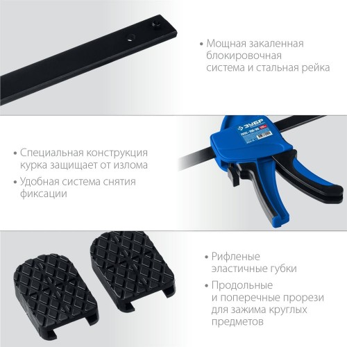 Cтрубцина пистолетная ЗУБР 32241-15, предназначена для фиксации и удержания деталей при выполнении столярных и слесарных работ, для опрессовки или выпрессовки различных деталей и узлов для ремонтных мастерских или на мелкосерийных производствах. Высочайшая точность выполнения работы. Зубчатая рейка изготовлена из высококачественной стали. Шарнирная рукоятка. Длинная рукоятка для комфортного использования пресса. Спозиционированные зубья штока обеспечивают работу высокой точности. Устойчивая конструкция для выполнения перпендикулярных углов. Рабочий стол имеет 4 паза различной ширины, позволяя выбрать оптимальный подход к работе в зависимости от детали.