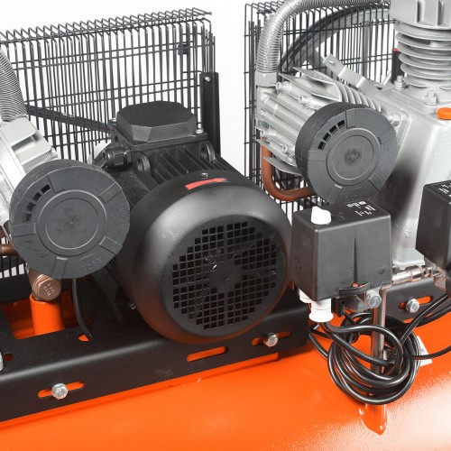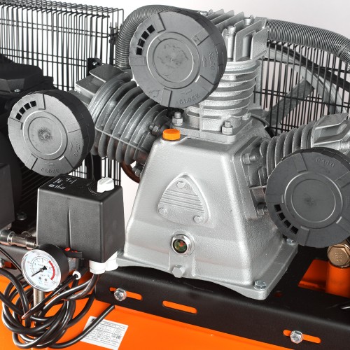 Трехцилиндровый компрессор с ременной передачей и увеличенной производительностью. Применяется для сервисных, ремонтных работ в гараже, на шиномонтаже и автосервисе.